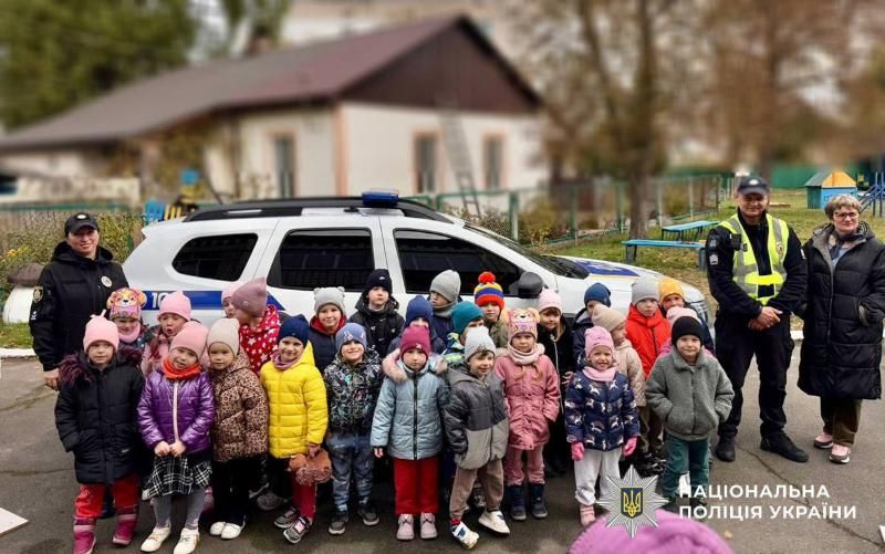 "Під час зустрічі поліцейські в ігровій формі розповіли дітям, як правильно переходити проїжджу частину, що означають сигнали світлофора та дорожні знаки, а також чому варто бути уважними поблизу дороги. Малята охоче відповідали на запитання, ділилися власними спостереженнями та демонстрували гарні знання правил безпеки.