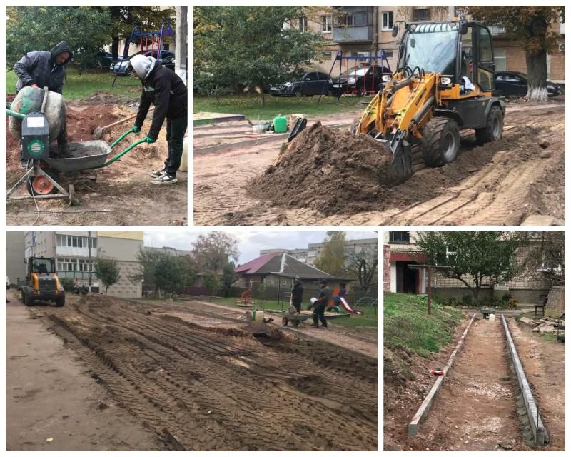 В Овручі, на вулиці Тараса Шевченка, 42, триває реконструкція прибудинкової території.