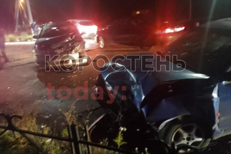 Ввечері, 17 жовтня, на "Чолівському" переїзді поблизу Коростеня сталася дорожньо-транспортна пригода за участі декількох автівок.