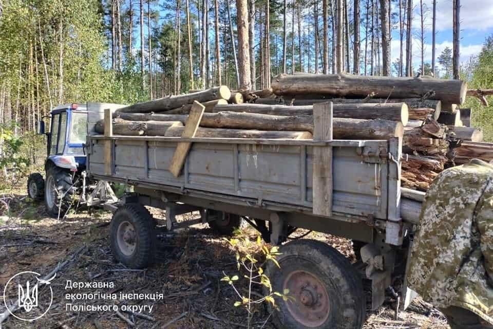 «26 вересня 2025 року державними інспекторами з охорони навколишнього природного середовища Поліського округу під час проведення заходів державного нагляду (контролю) у сфері охорони довкілля, спільно з працівниками лісової охорони ДП «Малинський лісгосп АПК», у лісовому масиві Ворсівського лісництва поблизу села Облітки було виявлено громадянина, який за допомогою бензопили здійснив самовільну порубку трьох сироростучих та одного сухостійного дерева породи сосна. Надалі правопорушник завантажив незаконно добуту деревину до причепа, однак залишити місце події йому не вдалося», - йдеться у повідомленні.